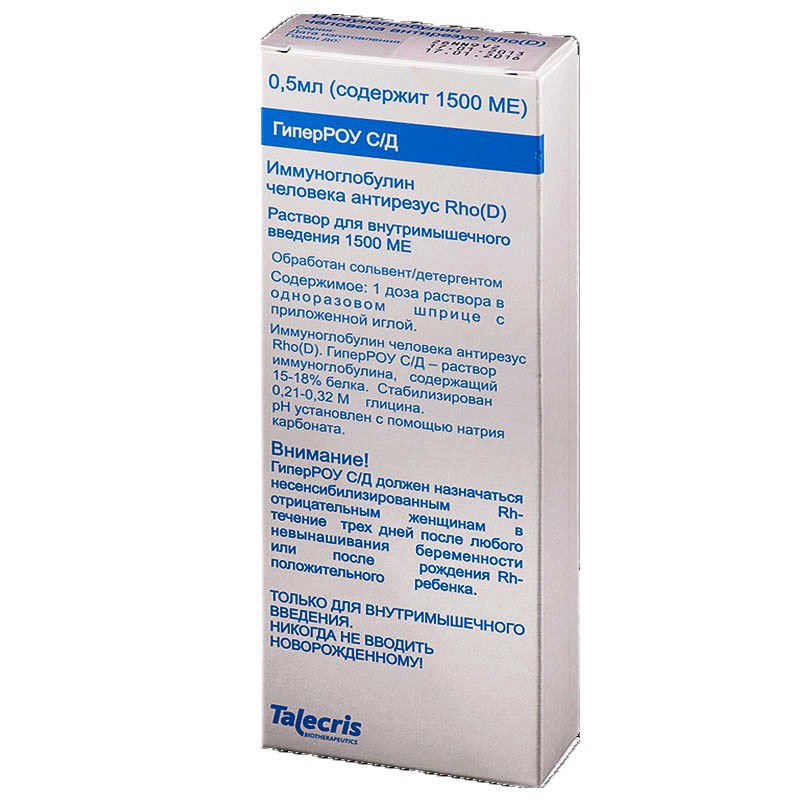 Для проведения профилактики в послеродовой период следует ввести 1 дозу (1500 МЕ) препарата ГиперРОУ С/Д в течение первых 72 ч после родов. Потребность в определенной дозе в случае прохождения полного срока беременности бывает различной в зависимости от объема крови плода, попавшей в кровоток матери. В 1 дозе (1500 МЕ) содержится достаточное количество антител для предотвращения сенсибилизации к резус-фактору, если объем эритроцитов плода, попавших в кровоток, не превышает 15 мл. В тех случаях, когда предполагается попадание в кровоток матери большего объема эритроцитов плода (свыше 30 мл цельной крови или свыше 15 мл эритроцитов), следует провести подсчет эритроцитов плода с использованием утвержденной лабораторной методики (например, модифицированного метода кислотного вымывания-окрашивания по Кляйхауэру и Бетке), чтобы установить необходимую дозу препарата. Вычисленный объем эритроцитов плода, попавших в кровоток матери, делят на 15 мл и получают число доз препарата ГиперРОУ С/Д, которые необходимо ввести. Если предполагается наличие свыше 15 мл эритроцитов плода или в результате вычислений дозы получается дробь, следует округлить число доз до следующего целого числа в сторону увеличения, например, при получении результата 1.4 следует ввести 2 дозы (3000 МЕ) препарата.