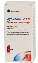 - Порошок Аугментин ЕС 600 мг/42,9 мг (5 мл) для приготовления суспензии.