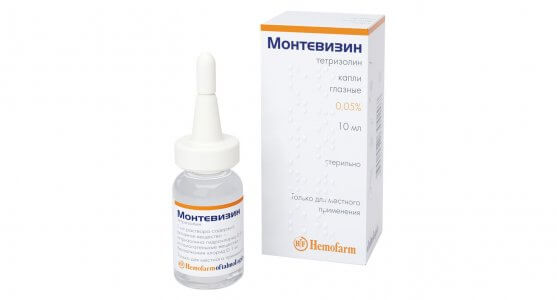 В 1 мл раствора Монтевизин содержится: активное вещество - Тетризолина гидрохлорид 0,5 мг;